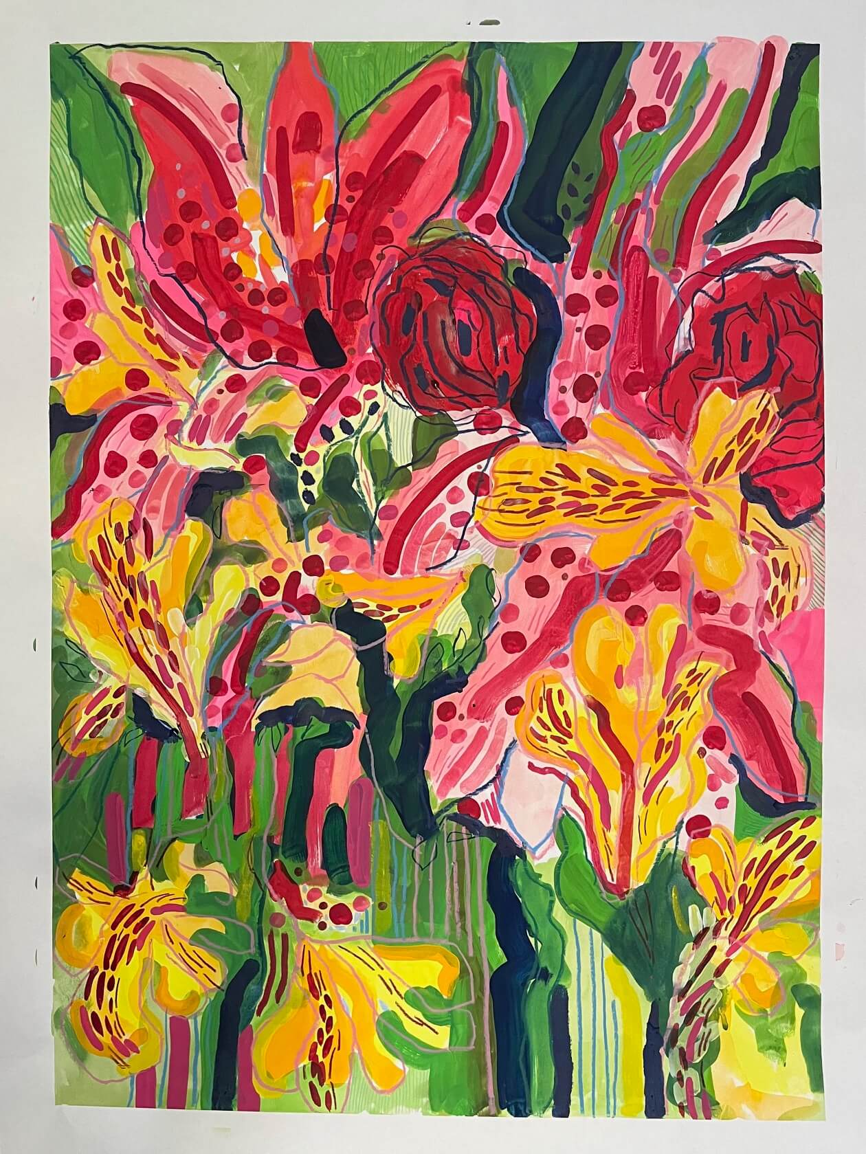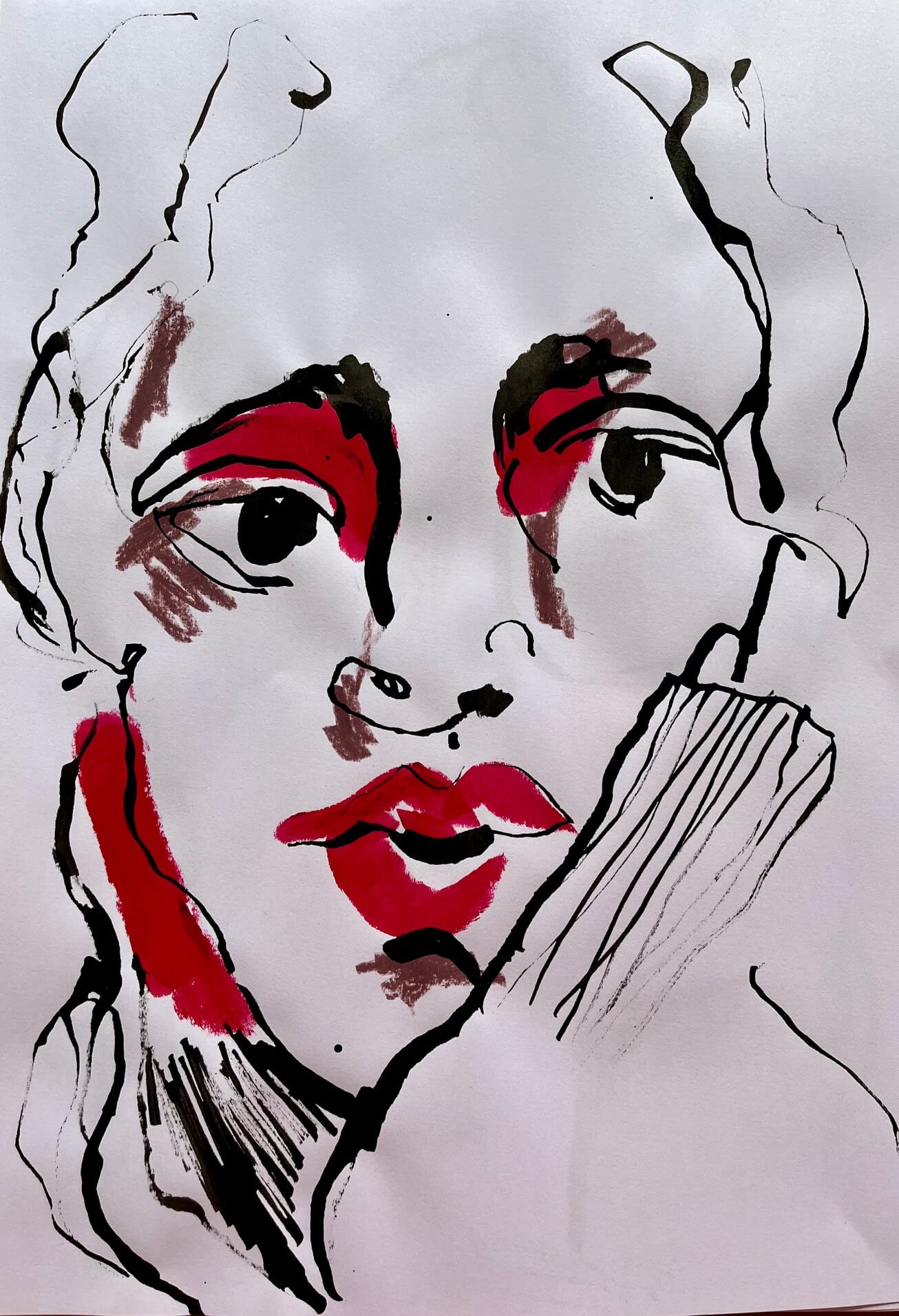 Kerry’s mixed media work is experimental, imaginative and constantly evolving. Using the observational studies that make up her day to day practise she particularly loves to focus on faces and florals.Working through The Royal Drawing School’s drawing development year, her practise has shifted from a hand-drawn graphic design practise, to free form, ink, paint and pencil on paper.“I like to colourfully capture the ordinary and mundane, showing their extraordinary essence; exaggerating and emphasising where the observation meets the imagination.
