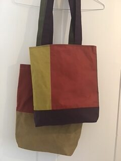 My work this year includes a collection of bags made with organic oilskin cotton,